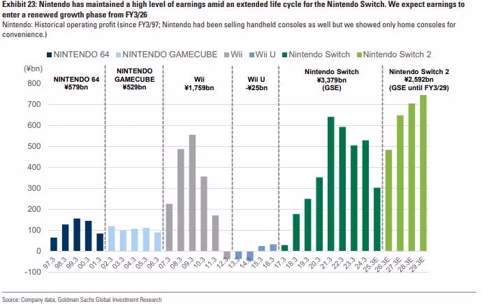 Goldman is encouraged that the Switch 2, which is expected to be released before the holiday shopping season later this year, could drive the company's profits to record levels.