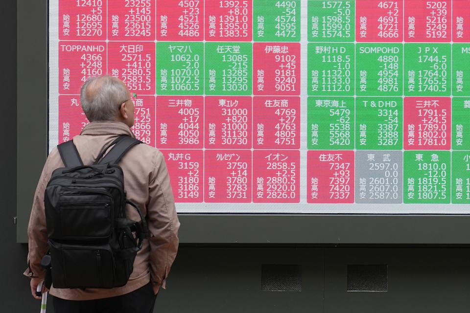 at a securities firm Tuesday, Nov. 25, 2025, in Tokyo. (AP Photo/Eugene