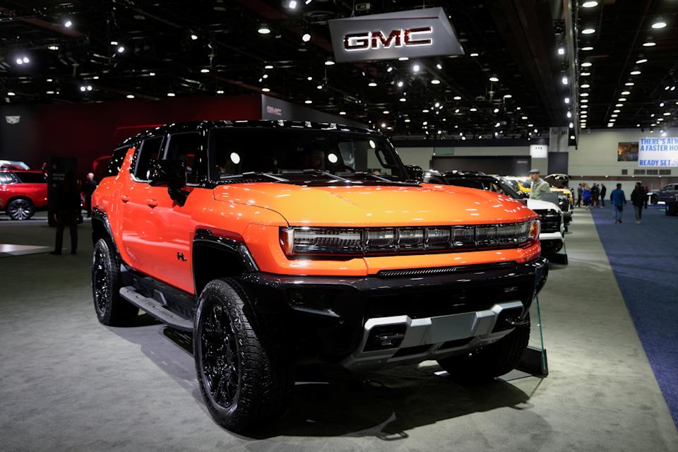 A 2026 GMC Hummer EV pickup truck is displayed during media day of the